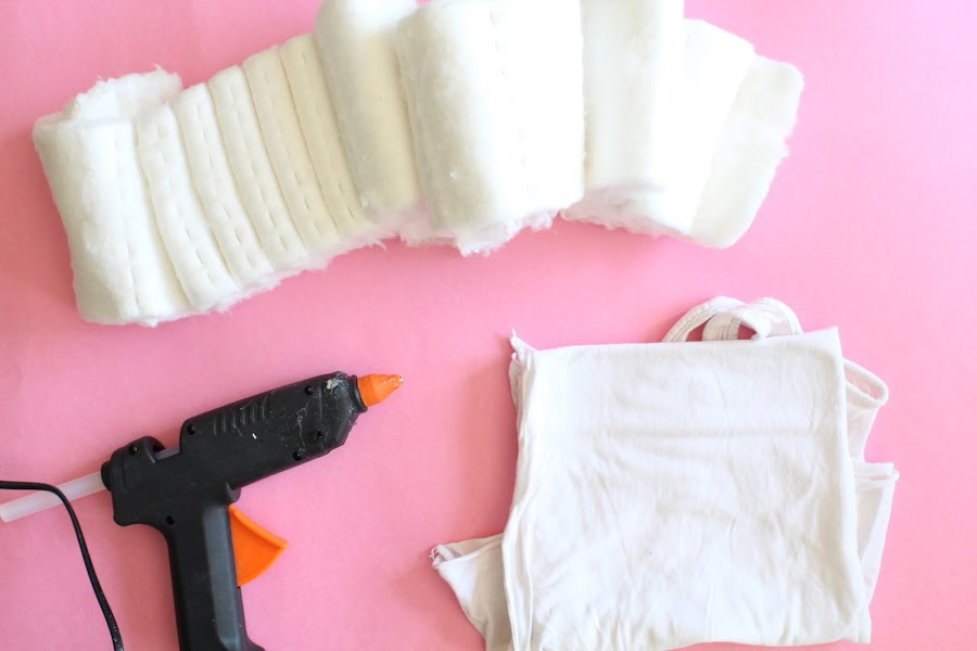 Empezaremos creando nuestro vestido de algodón, así que para empezar necesitaremos : una camiseta, 2 paquetes de algodón en zig zag y pistola de silicona.