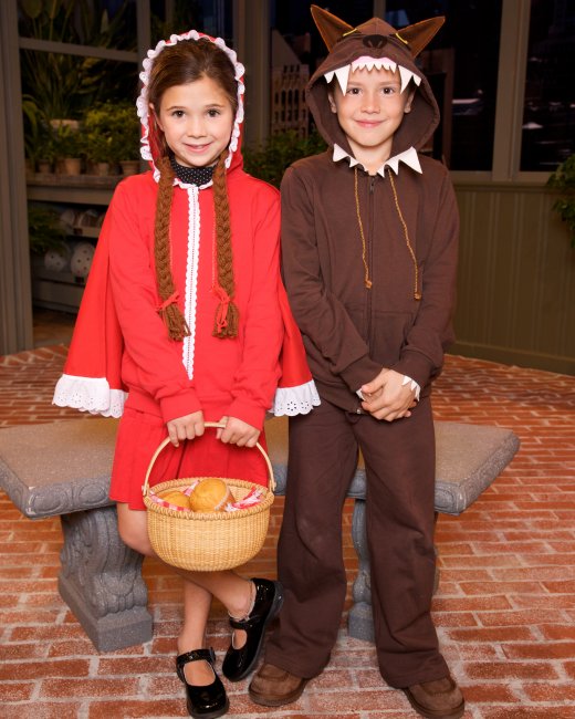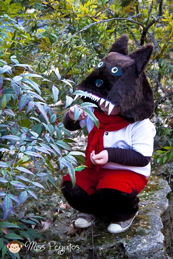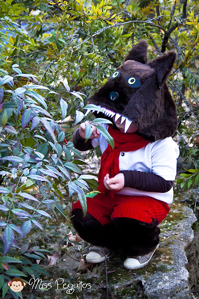 La idea de los disfraces la saqué de estos de Martha Stewart, aquí tenéis el tutorial para hacer el de Caperucita y aquí el de Lobo.