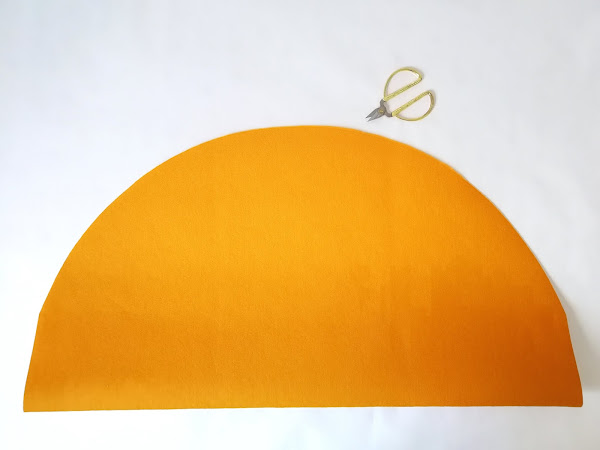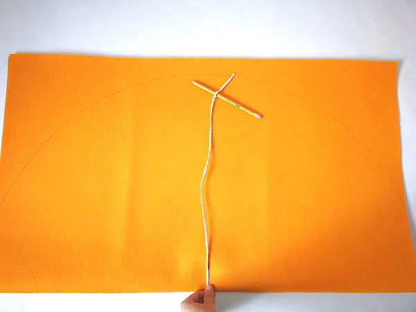 1.- Doblamos el fieltro y trazamos una semicírculo. En mi caso como era para mí utilicé 2 metros de fieltro y el tamaño del semicírculo fue el ancho del fieltro, para que me saliese exacto utilicé el viejo truqui de un lápiz atado a una cuerda y listo, semicircunferencia perfecta sin complicación.