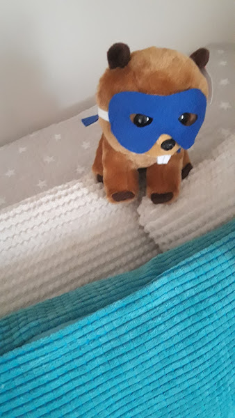 Y, por último, ¿qué es un superhéroe sin su compañero fiel? Cogí un peluche y lo disfracé de superhéroe. Le hice su capa y su disfraz.