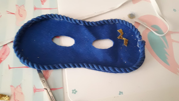 Yo lo decoré con una cinta en los bordes y un trozo de fieltro a modo de relámpago. Le puse una cinta elástica para sostenerlo.