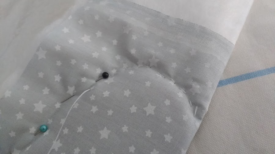 Podemos hilvanar para que no se nos muevan las telas y después cortaremos la tela.