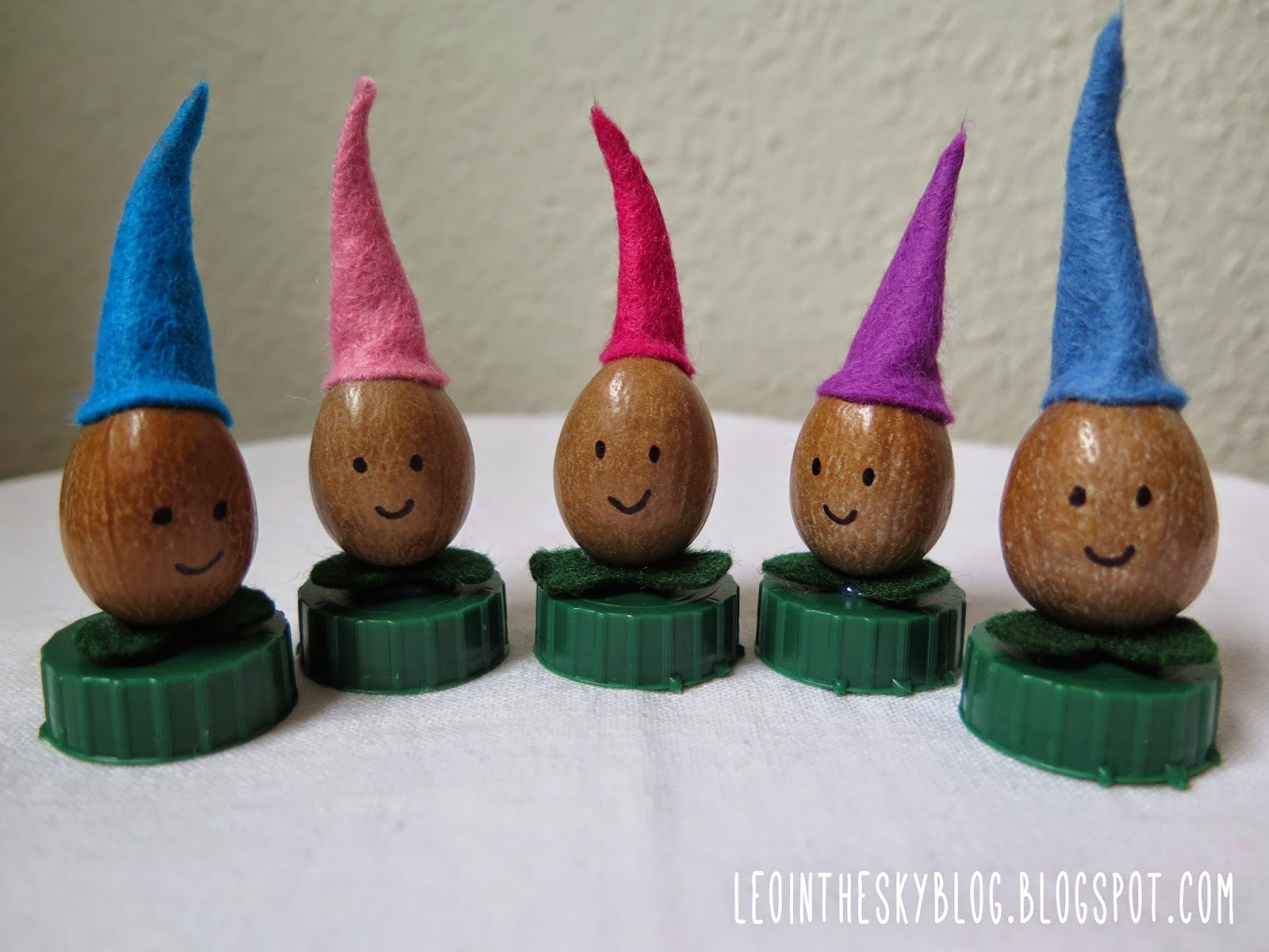 pero como seguían sin ser muy estables, al final decidí pegar cada duende sobre un tapón de plástico, esta vez usando la pistola de pegamento: