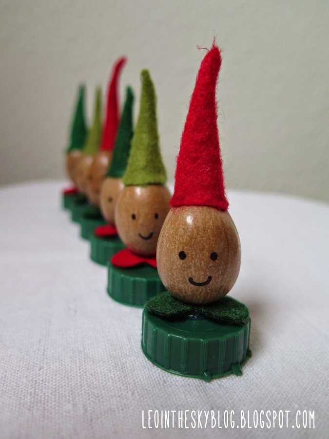 Se pueden usar para decorar cualquier rinconcito juntos o por separado, para adornar un regalo, para colgar en el árbol si en vez de pegarlos en el tapón les coses un cordoncito al gorro..., puedes hacer un tablero con un cartón y unos círculos de fieltro o cartulina y ya tienes un 3 en raya navideño...
