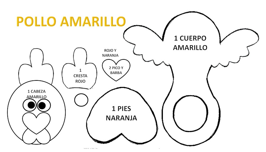 Goma eva o foamy blanco, amarillo, naranja, rojo y rosa (al gusto), silicón caliente, cola de ratón, pintura blanca y negra, grapadora, moldes y tijeras.