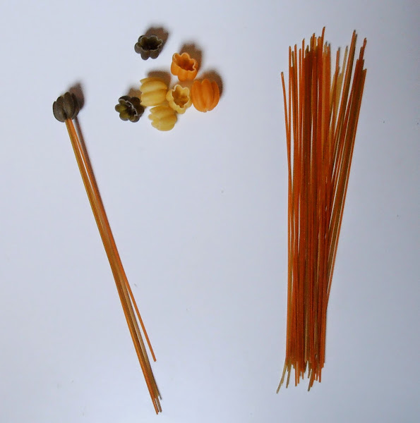 Decidí hacer las flores con pasta, tulipanes y espaguetis con vegetales.