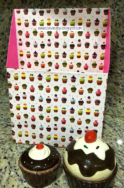 A la final me decidí por este papel de pastelitos, porque esta caja iria en la cocina. La forramos por toda la parte frontal y por los lados la forramos de un color rosa fuerte.