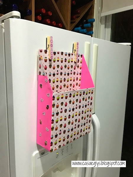 Solo pega unas tiras de imán por detrás de las pinzas de madera, cuelga tu caja y a la puerta de la nevera directo.