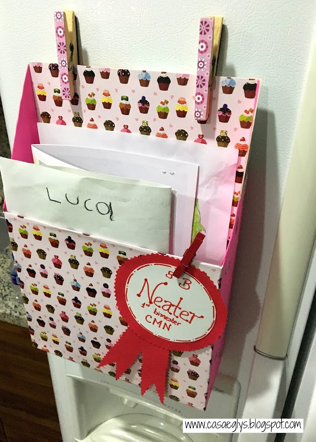 Le colocamos algunos dibujos dentro y con otra pinza de color colgamos una medalla que se gano Andrea por ser organizada (Neater), no sé a quien habrá salido, jajaja!
