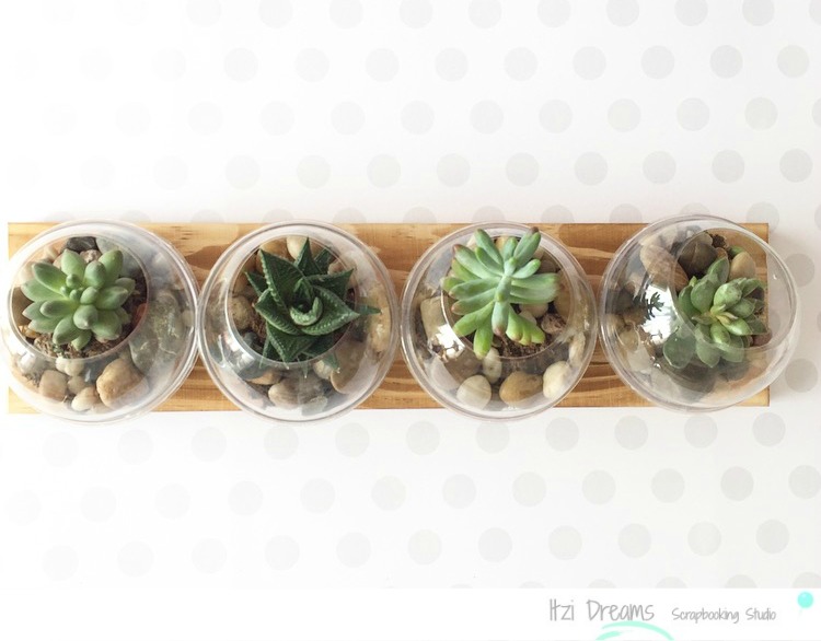 Yo he usado esta base de madera para poner mis cactus y crear un bonito centro de mesa. Un DIY Low Cost para reciclar los recipientes de helado.
