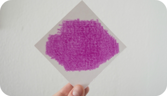 Encima de una cartulina blanca pintas con rotuladores o lapices de colores la superficie necesaria para abarcar el dibujo que quieras hacer.