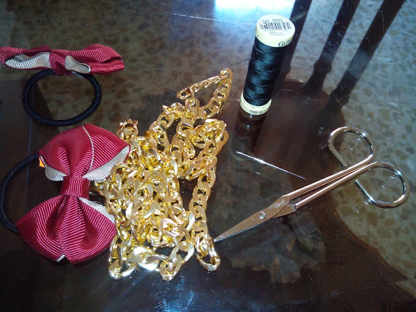 7...ya vamos a coser nuestra cadenita dando unas puntadas en cada eslabon y nuestro lacito