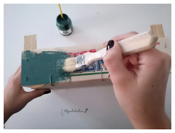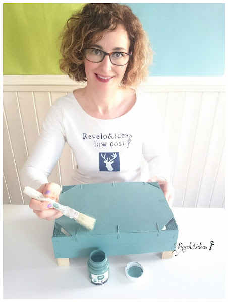 El siguente paso será pintar la cajita yo he utilizado la pintura chalk de color gris verdoso de la marca (ver) titanlux, de una de sus cápsulas creativas, utilizando una brocha.