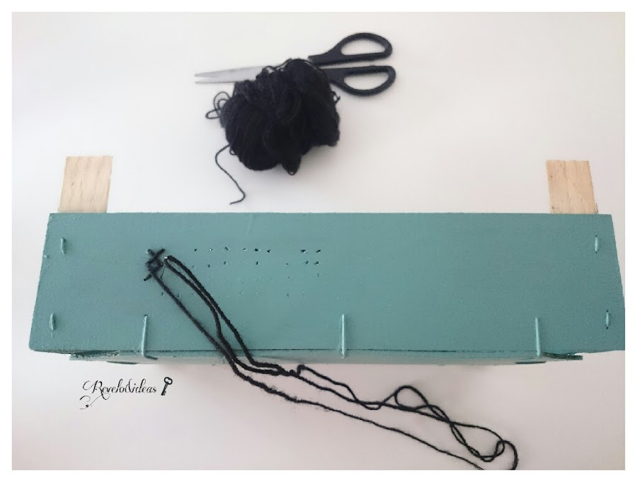El siguiente paso será hacer los agujeros por los que pasaremos la lana, utilizando el taladro con una broca muy pequeña.