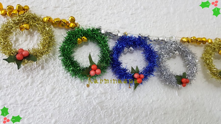 Esta es una decoración muy típica para las fiestas de Navidad, aaaahhh...!!! también la puedes usar como decoración para el árbol, tanto en guirnalda como usando solo las coronitas.