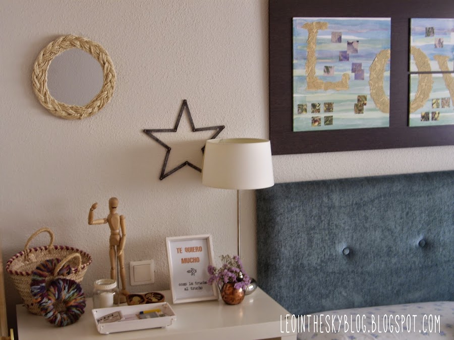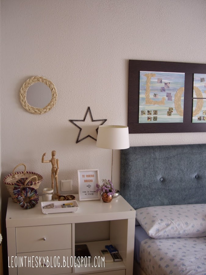 Aquí es donde lo he puesto, en nuestra habitación, sobre la cómoda/mesilla de noche: