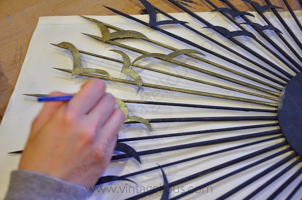 Ahora toca empezar a pintar, nosotros utilizamos un tono gris oscuro casi negro del tipo chalk paint, pero se puede utilizar cualquier pintura de imprimación. Usamos el color oscuro para crear un dorado envejecido, pero si queréis pintarlo en un dorado sin envejecer habría que dar una base en blanca. Solo le dimos una capa base puesto que cubre bastante la pintura. También se les dio la base a los pájaros.