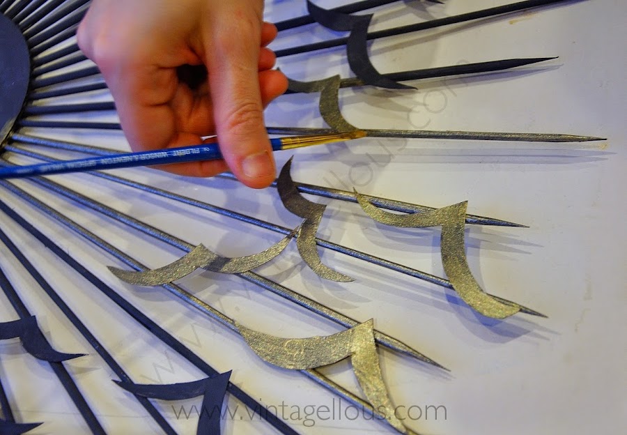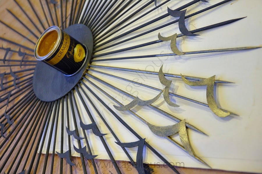 El siguiente paso fue pintar con el dorado, aquí fueron necesarias dos capas pero muy finas para dejar traspasar un poco del color base oscuro para conseguir ese efecto envejecido. Con este tipo de pintura no fue necesario barnizar ni dar con cera para proteger puesto que su acabado es como un esmalte.