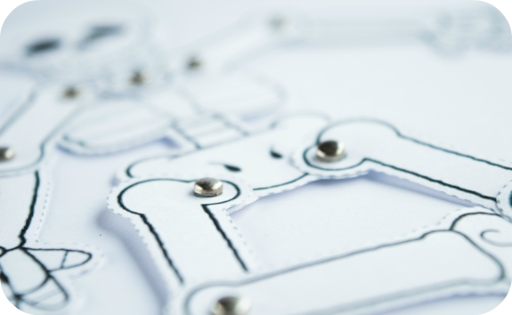 Simplemente necesitas la plantilla del esqueleto, unas tijeras y chinchetas de dos patas.