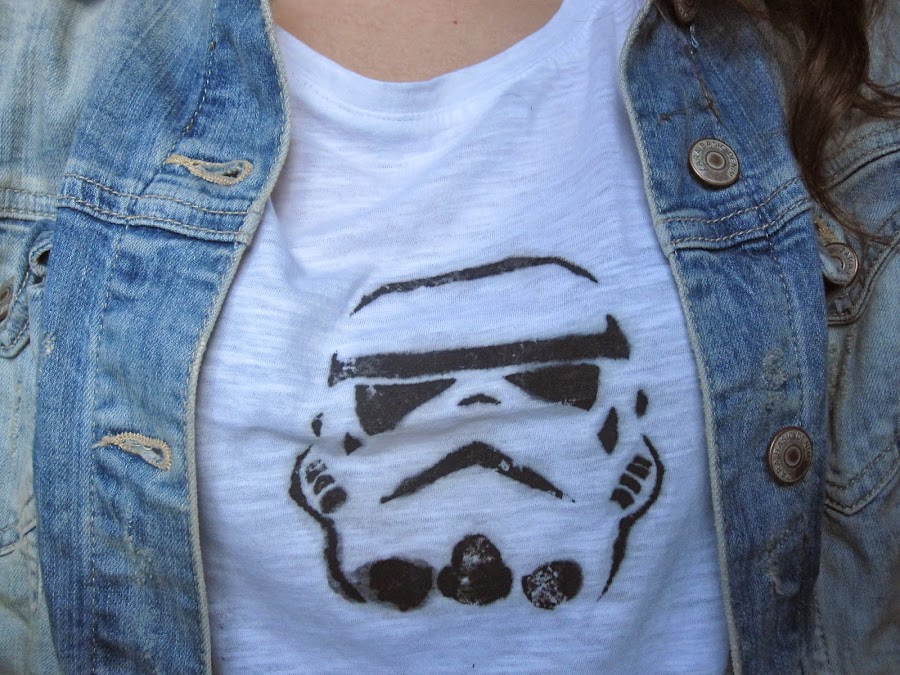 Luego puse los recortes encima de la camiseta, bien centrados y a la altura que me gustase más. Evidentemente mi pulso fallaba. Por cierto, cien puntos para el que sepa a qué se refiere el eslogan de esta camiseta.