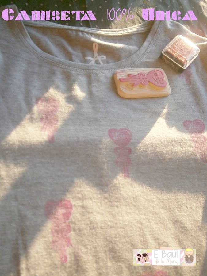 Nosotros hemos utilizado una camiseta básica y un sello molón. En este caso uno requete romántico!