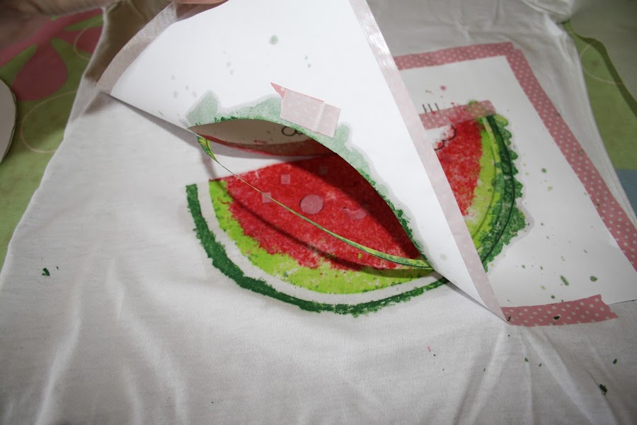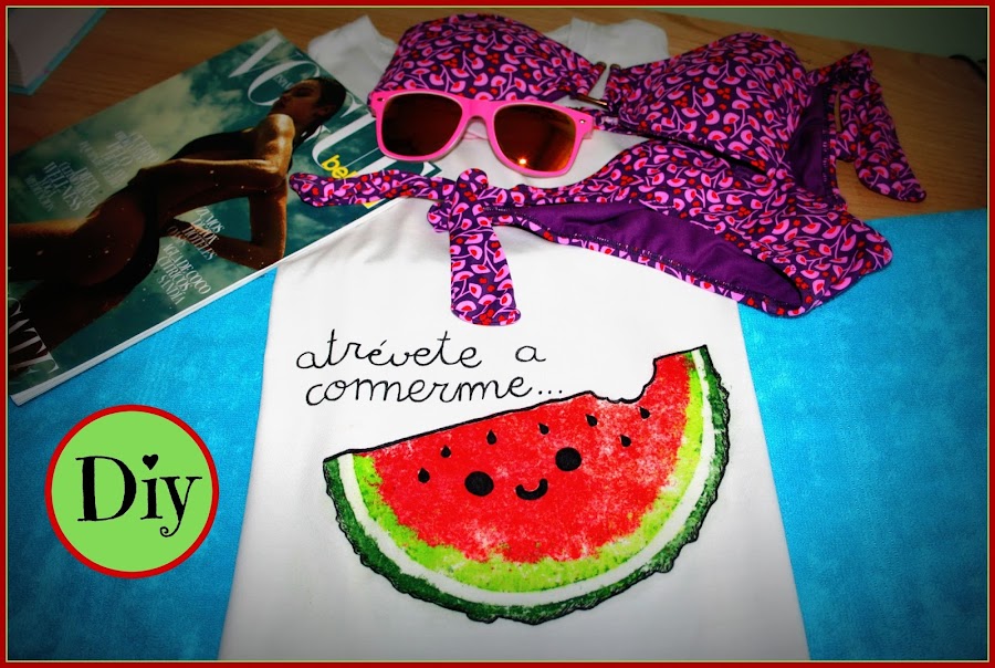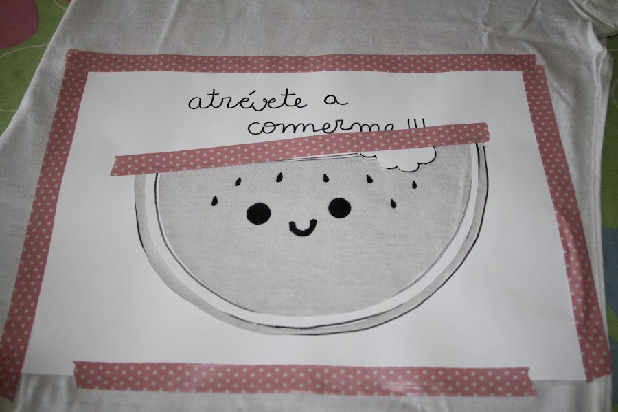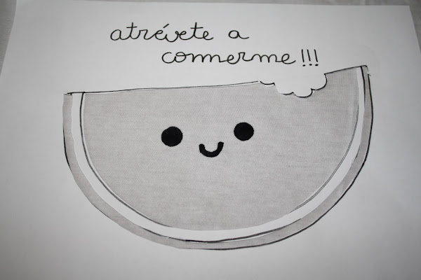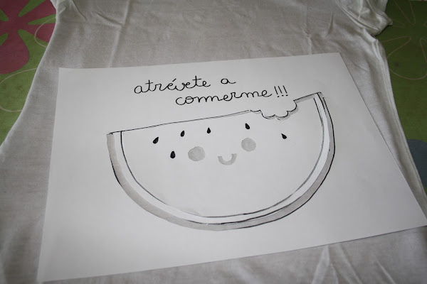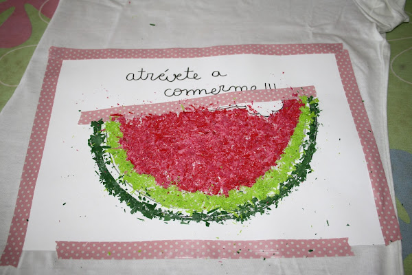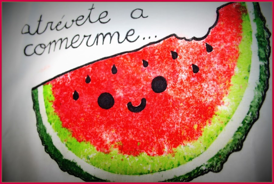 Así que hoy os enseño a estampar una sandía en una camiseta.... ¡¡¡nada más y nada menos que con ceras de colores!!!