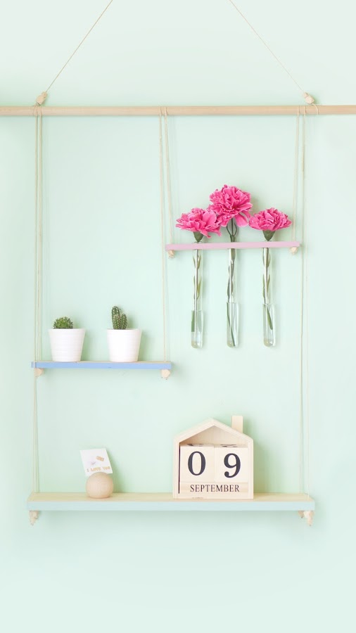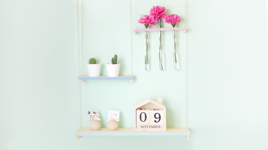 Como habéis visto en la foto de portada, yo me decanté por crear una estantería colgante muy ligerita pero que le diera a mi nuevo estudio ese toque nórdico que tanto me gusta. Así que estos son en general los materiales que utilicé.