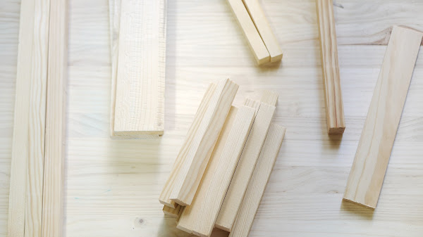 Lo que necesitas para hacerte uno es: la cinta de montaje Montack, listones de madera, lija, un cartón finito y grande y pintura. Yo he de confesar que he querido hacer este proyecto con maderas recicladas de otros diys para darles un nuevo uso, así que también utilicé la sierra para hacer que las maderas tuvieran tamaños similares.