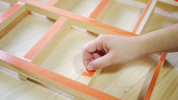 Una vez que tengas claro el diseño puedes empezar a aplicar la cinta en todas las piezas para unirlas.