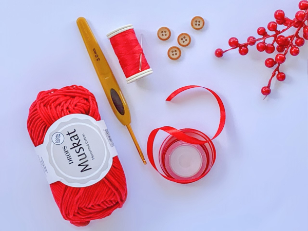 - Hilo de algodón o sintético en color rojo o el que tu prefieras (yo utilice Muskat de Drops)