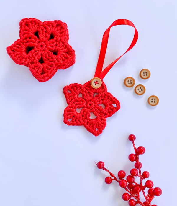 - Comenzamos tejiendo nuestra estrella utilizando la técnica del crochet y siguiendo el patrón que te facilito o el que tu quieras.