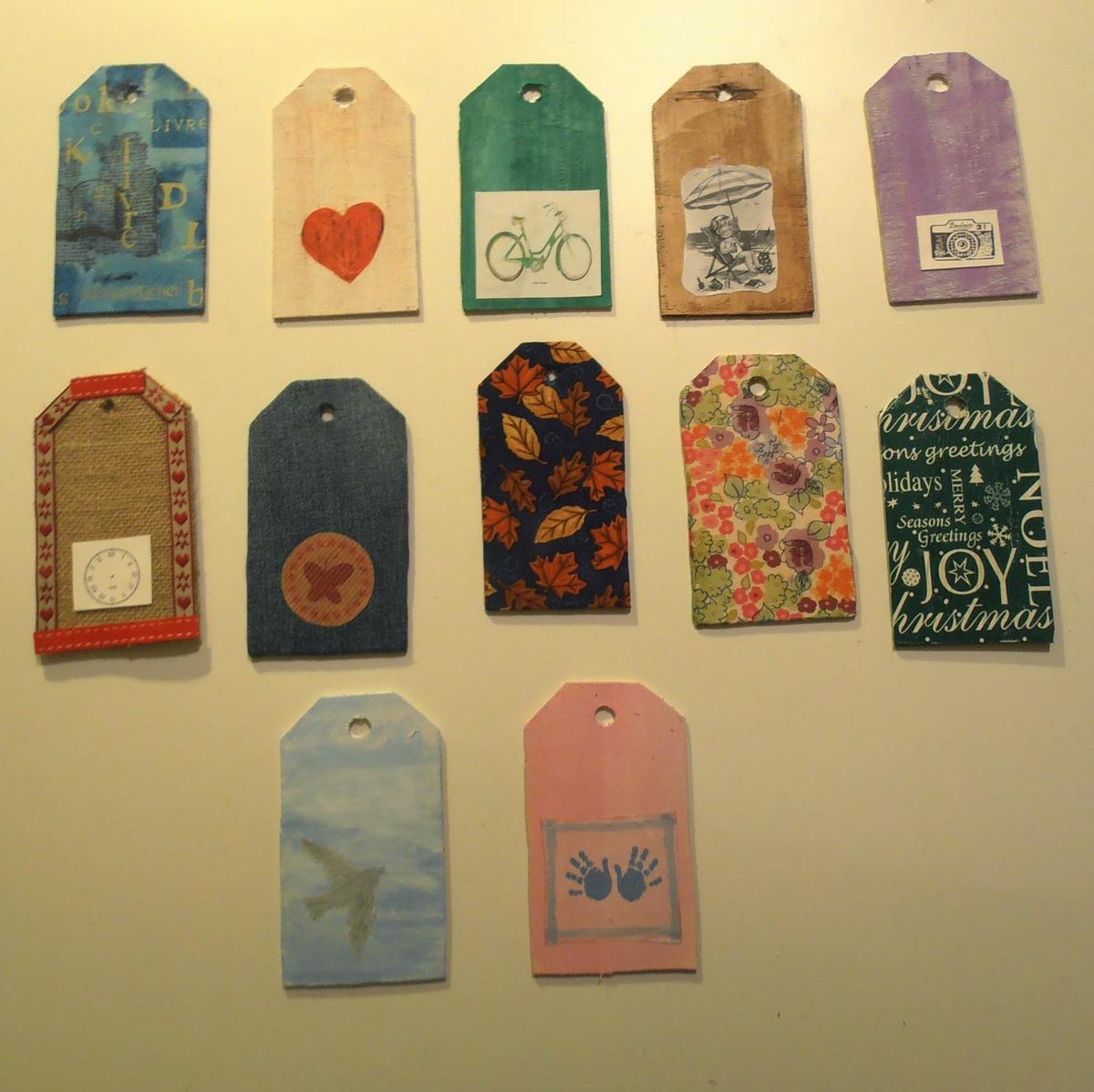 En ellas dibujé 12 etiquetas, tres en cada una.