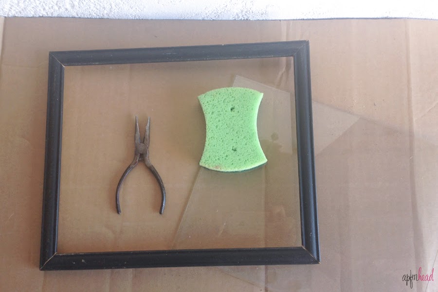 Empezamos? Lo primero es desmontar el marco para quitar la imagen, aprovechamos y limpiamos bien el cristal por ambos lados. También limpiamos el marco de madera con un poco de agua y jabón.
