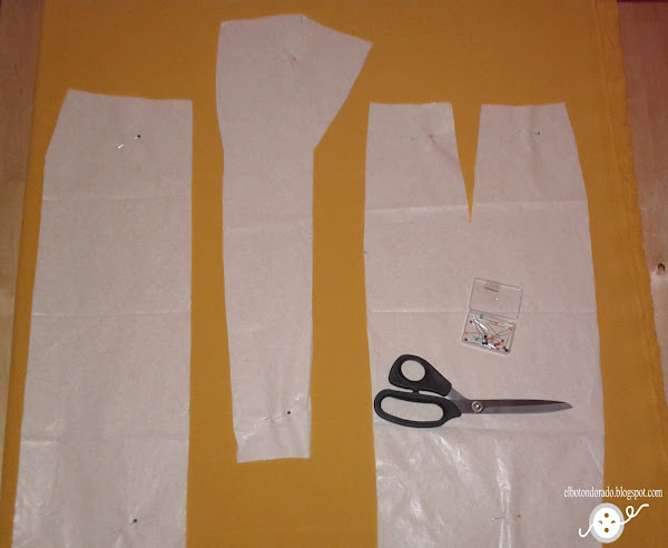 En una copia cortamos el patrón por la línea roja para sacar la pieza número 1 y la guardamos, porque esta pieza se quedará así.