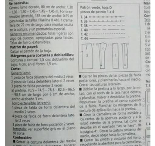 No tengo esta revista, así que pensé en hacer modificaciones en un patrón de falda lápiz. Raquel muy amablemente me mandó una foto del esquema para orientarme un poco.