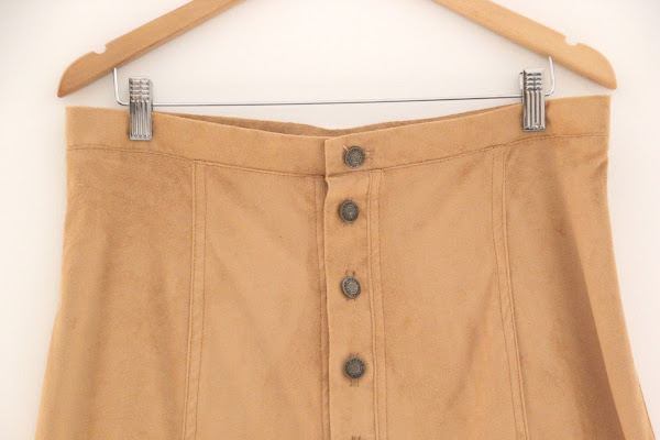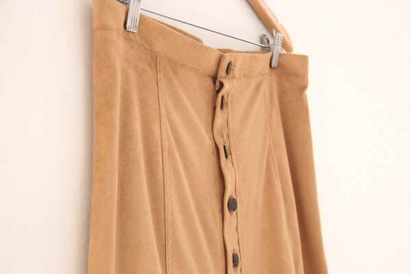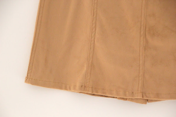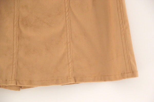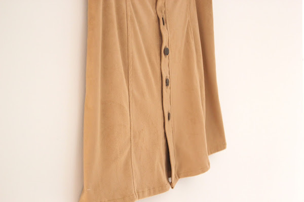 La tela que hemos utilizado es de tipo antelina pero finita, perfecta para realizar prendas de ropa como esta falda. Esta tela la podéis encontrar aquí muy parecida pero no es el mismo tono de marrón.