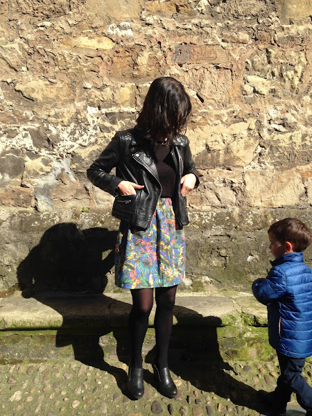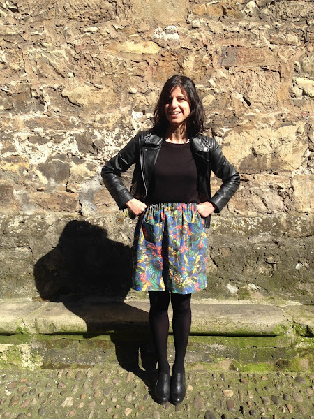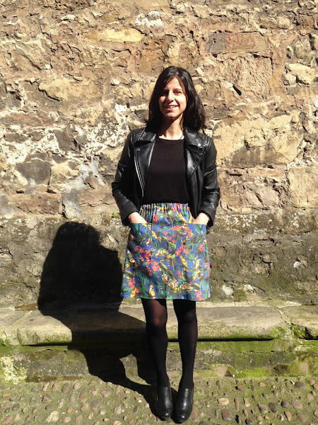 Vamos que en la misma mañana de sábado que la he cosido, la he estrenado. He tardado menos en hacerme esta falda que en esperar la cola de cualquier probador de tienda. Y encima la he hecho justo como yo la quería, ni "apretá" ni con vuelo. Estoy de un contento... ¿A que se me nota?
