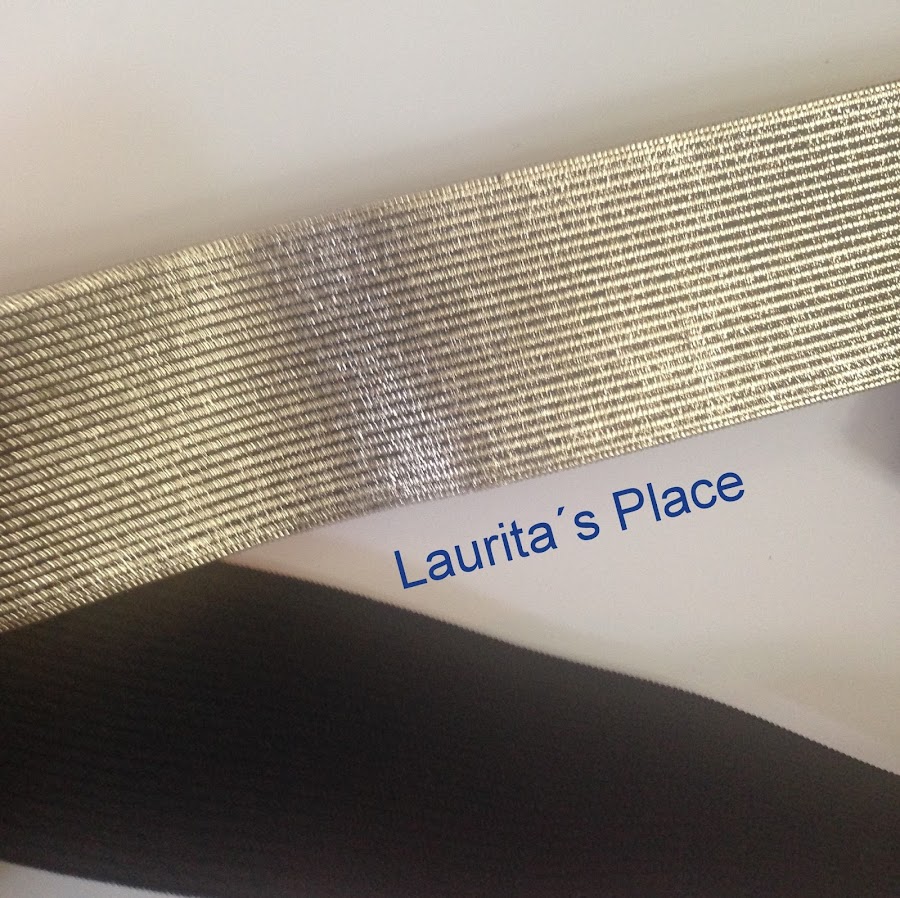 Para la cintura utilicé un elástico muy chulo en color dorado de una mercería de mi ciudad, que mide 4 cm. de ancho pero al coser se queda en un poquito menos.