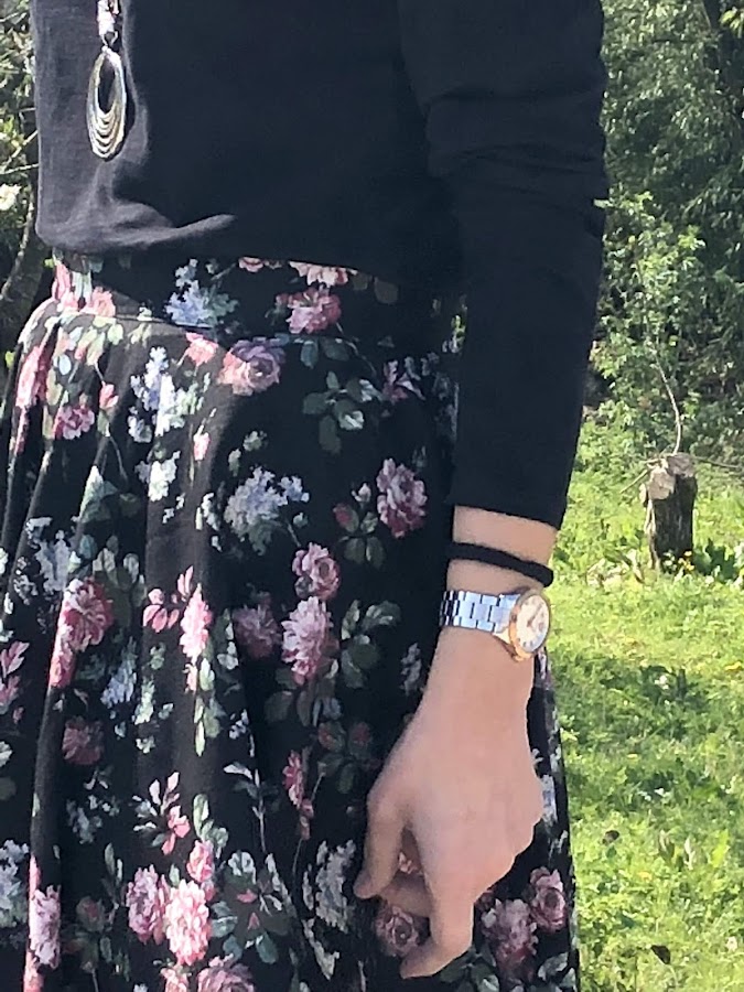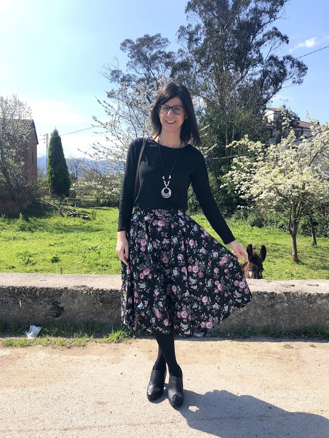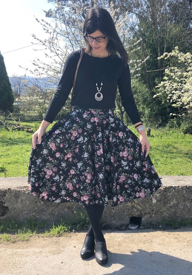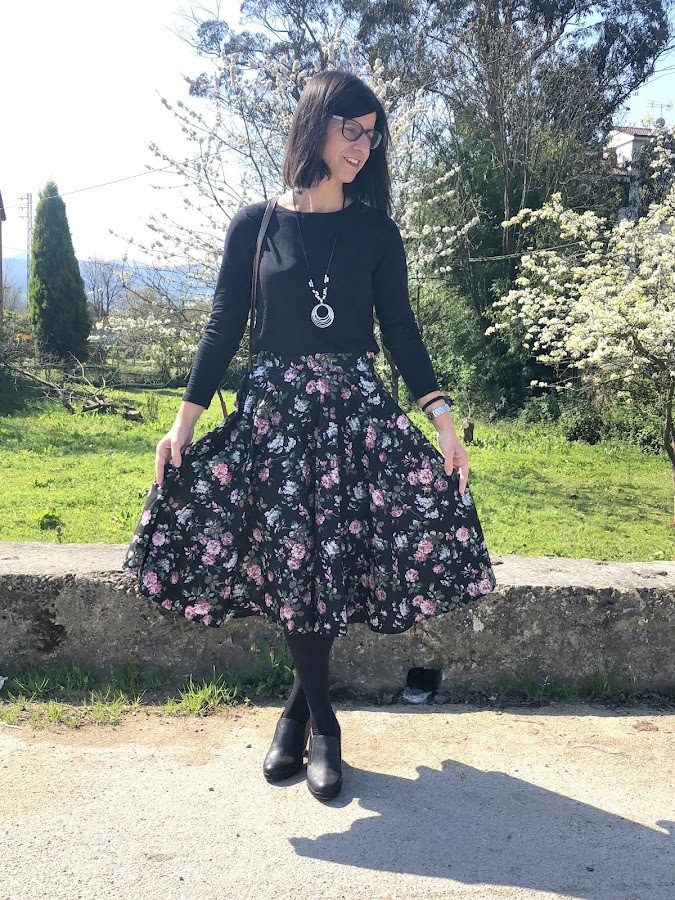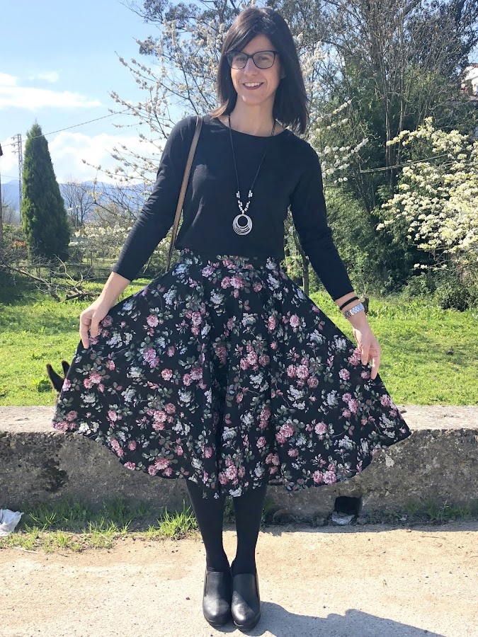 Tenía esta tela en el maletón de las telas desde hace tiempo, esperando turno. Tengo una megamaleta de cuando vivía fuera de Asturias que desde que he vuelto a la tierriña ya no me hace falta (tendría que irme 3 meses de vacaciones para poder llenarla) y, desde entonces, es el armario perfecto para las telas. Fue comprada hace un tiempo en alguna tienda de telas de Oviedo. He decidido ir sacando todas las telas que tengo guardadas, o al menos cada vez que me cosa algo con una tela recién comprada, sacar una del maletón para coser algo más.