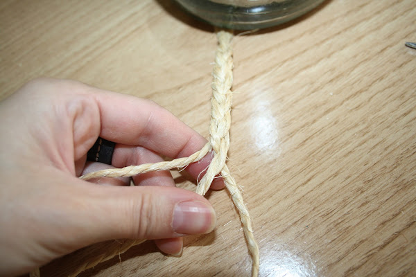 Después haremos una trenza con la cuerda, lo suficientemente larga como para que haga las veces de asa.
