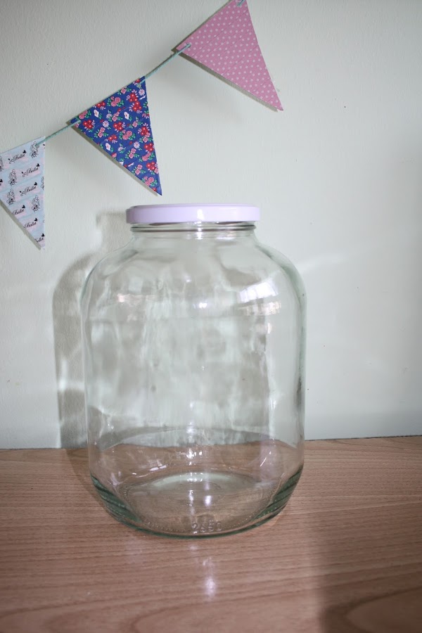 Yo tenía este grande desde hacía tiempo, creo que de haber comprado fruta en almíbar. Y como tenía un tamaño bastante considerable, lo guardé para hacer un Diy con él.