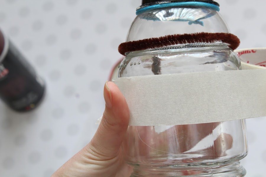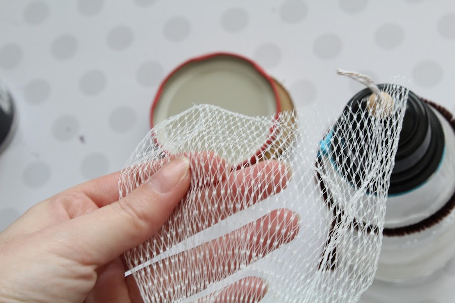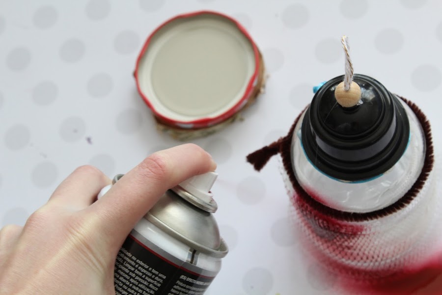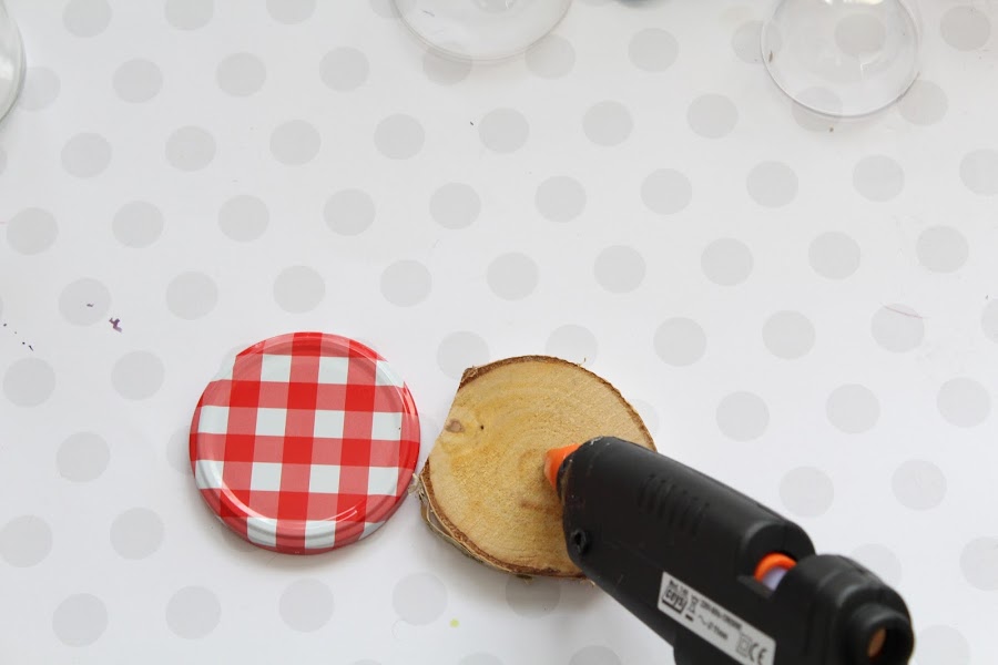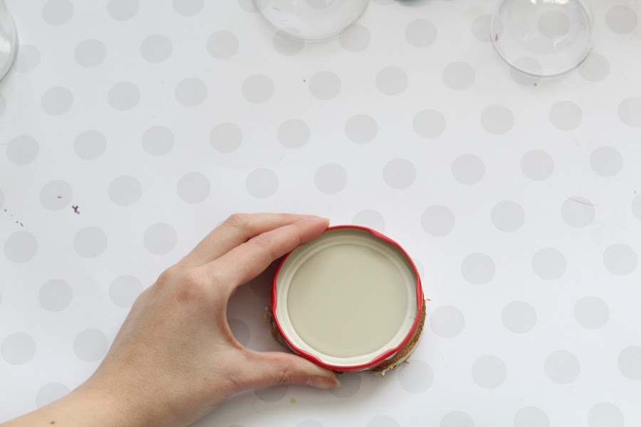 La primera parte sera la tapa del bote de cristal a una base redonda, aproximadamente de la misma medida, de madera.