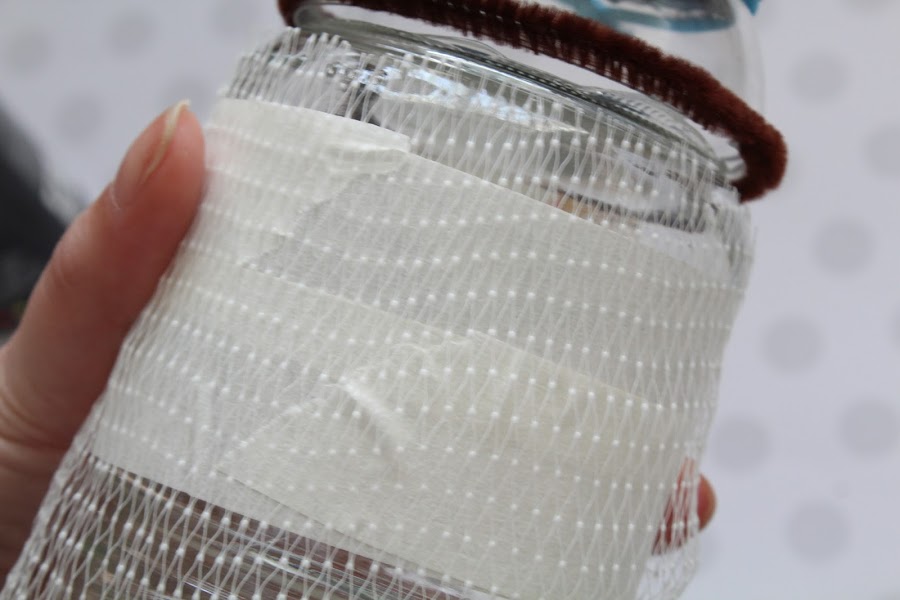 3 Paso: Cubriremos con cinta de carrocero las partes de cristal que queramos conservar. una vez colocada la cinta pondremos un trozo de malla (de fruta ) para pintarla a la vez que el resto.