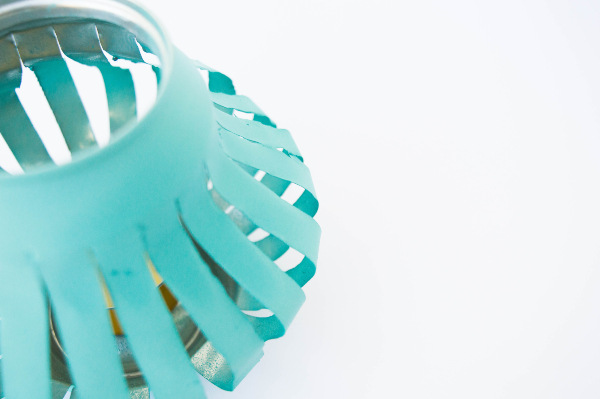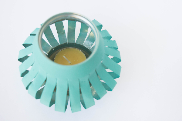 Con el cuter y teniendo muchísimo cuidado en este paso, recortamos la parte superior por completo y hacemos cortes verticales al rededor de toda la lata con una separación de 1cm aproximadamente y sin llegar a cortar por completo ni por la parte superior ni por la inferior.