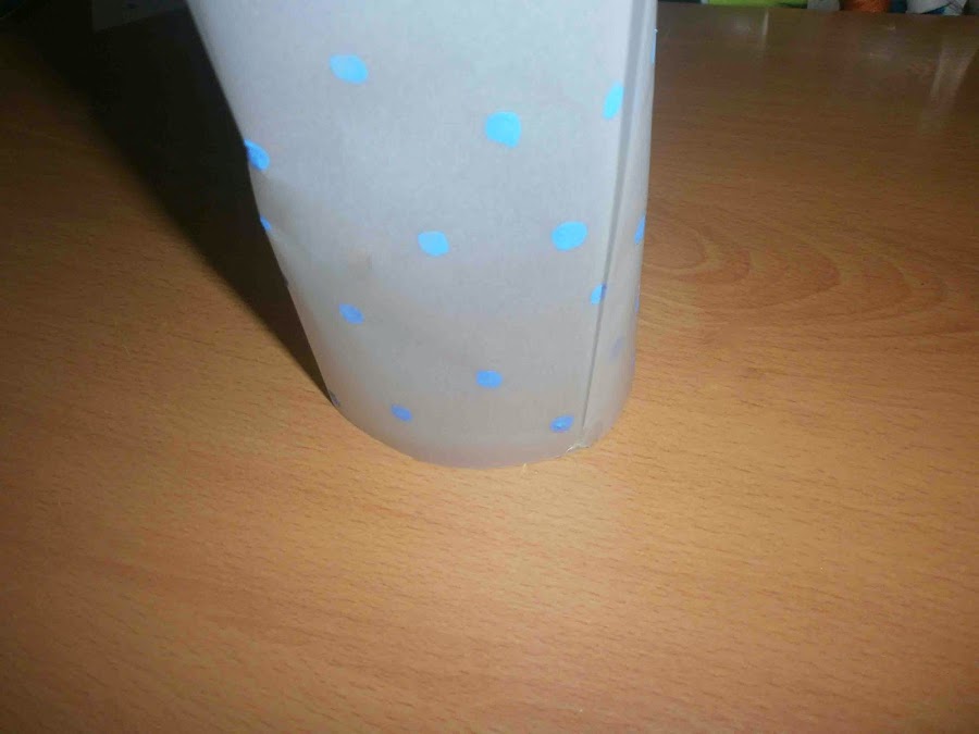 Rodeé el papel al bote y lo pegué con silicona.