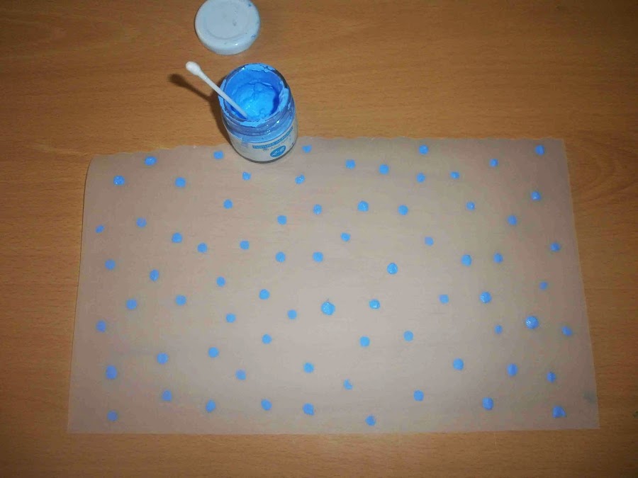 Le hice unos topos de color azul y dando toquecitos con el bastoncito y dejé secar.