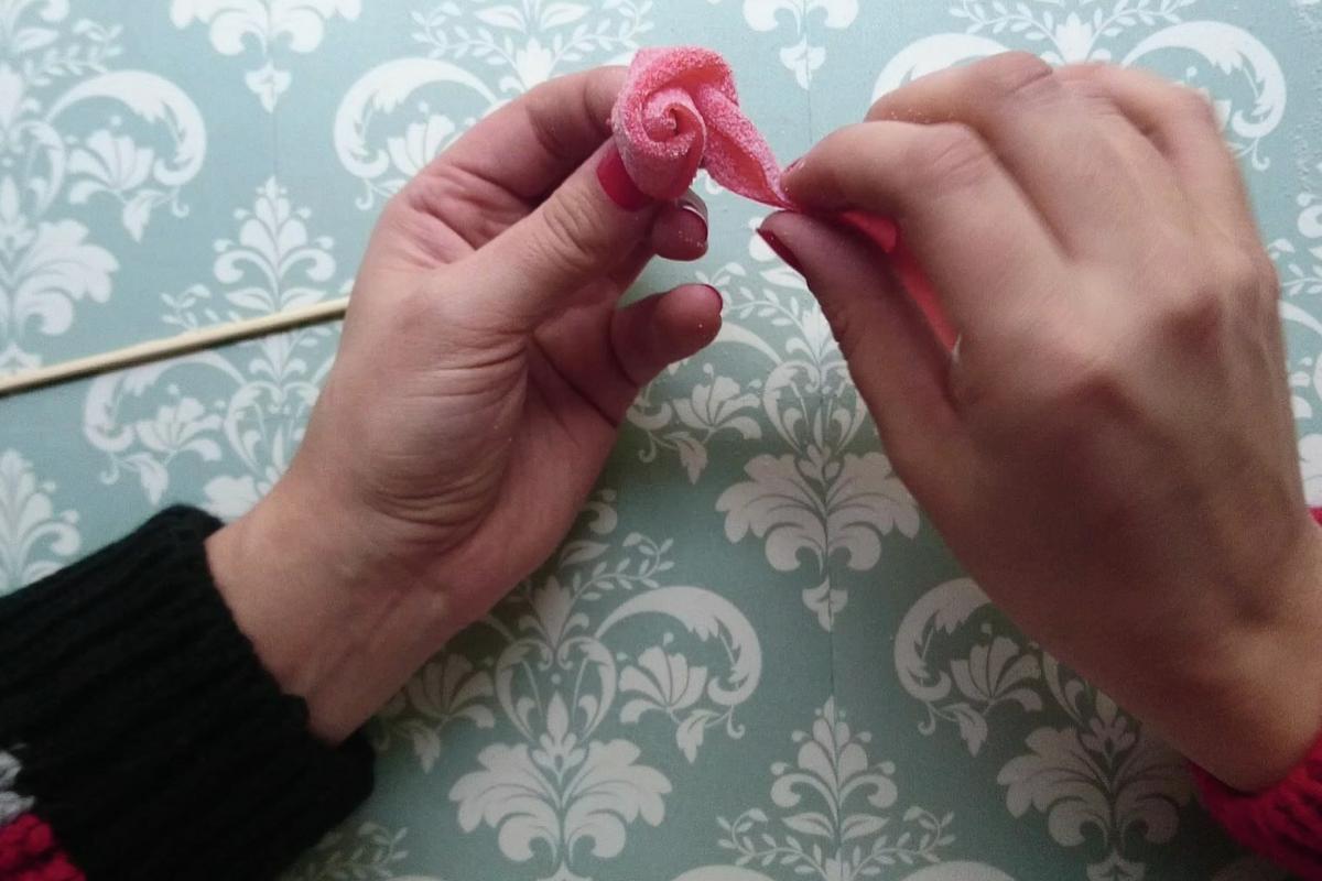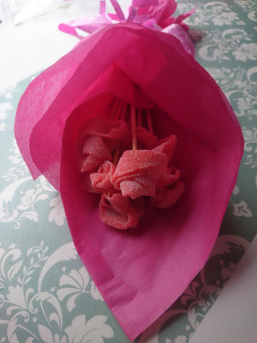 Vamos a llevar a cabo una manualidad que podemos comernos o usarla de decoración: ¡Un ramo de rosas hecho con lenguas de chucherías!