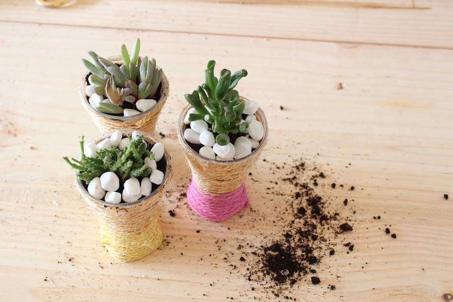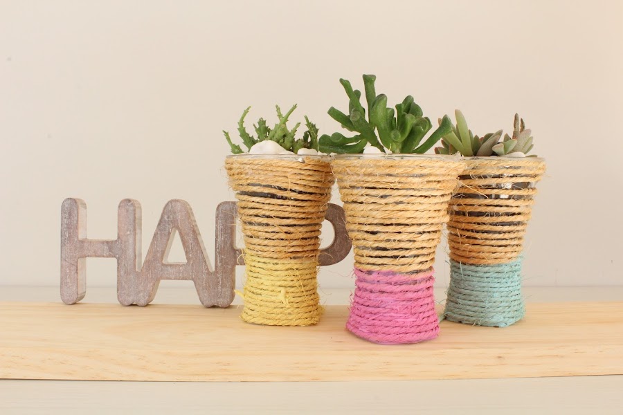 Y listo !!! Ya tenemos tres macetas chulísimas para decorar, y lo mejor de todo es que las hemos reciclado. Os dejo el enlace de otro tutorial parecido que hice hace algunos meses, en el que también reutilice envases de helados.
