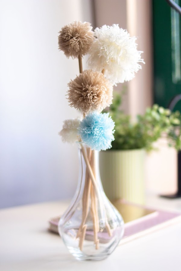 A falta de flores naturales.. ¿por qué no las hacemos con lo que tengamos por casa? En este caso son flores de lana.