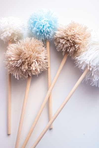 → El siguiente paso es pegar los pompones al palo, yo usé silicona fría pero la caliente es más rápida!